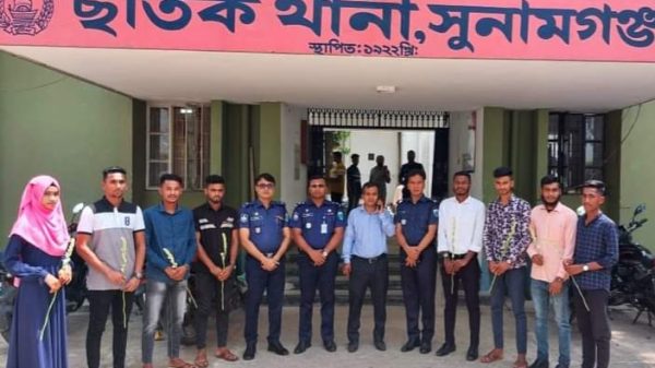স্টাফ রির্পোটার :: বাংলাদেশ পুলিশে কনস্টেবল পদে সদ্য নিয়োগপ্রাপ্ত আট জন সদস্যকে সুনামগঞ্জ জেলার ছাতক থানার পক্ষ হতে ফুলেল শুভেচ্ছা জানানো হয়েছে। তাঁরা সকলেই আগামী ৫ মে বাংলাদেশ পুলিশে ট্রেনিং করার জন্য যোগদান করবেন। কনস্টেবল পদে নতুন নিয়োগ প্রাপ্তদের ফুলেল শুভেচ্ছা জানান ছাতক থানার সার্কেল এ এসপি রনজয় চন্দ্র