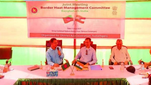 তাহিরপুর প্রতিনিধি :: তাহিরপুরে বর্ডার সংক্রান্ত চুড়ান্ত সভা অনুষ্টিত হয়েছে। বৃহস্পতিবার (১১ মে) বিকাল ২টায় সীমান্তের শাহিদাবাদে বর্ডার হাট পরিচালনা কমিটির এক যৌথ সভা অনুষ্টিত হয়। দু’দেশের অতিরিক্ত জেলা ম্যাজিষ্টেট(এডিএম) পর্যায়ে শাহিদাবাদ হাট এলাকায় এ বৈঠকটি অনুষ্টিত হয়েছে। বৈটকে আগামী ২৪ মে শাহিদাবাদ বার্ডার হাটটি চালু হবে মর্মে আলোচনা