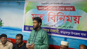 তিনি শনিবার রাত ৮ টায় শারদীয় দুর্গা উৎসব উপলক্ষে জগন্নাথপুর উপজেলার সনাতন ধর্মাবলম্বীদের সাথে পৃথক মতবিনিময় সভায় প্রধান অতিথির বক্তব্যে উপরোক্ত কথাগুলো বলেন। জগন্নাথপুর উপজেলা হিন্দু বৌদ্ধ খ্রিস্টান ঐক্য পরিষদের সাধারণ সম্পাদক সুধাংশু শেখর রায় বাচ্চুর সভাপতিত্বে ও পৌর জামায়াতের সদস্য মাওলানা নেছার উদ্দিনের পরিচালনায় শ্রী শ্রী জগন্নাথ জিউর আখড়া কেন্দ্রীয় মন্দিরে অনুষ্ঠিত প্রথম মতবিনিময় সভায় বক্তব্য দেন জগন্নাথপুর উপজেলা হিন্দু বৌদ্ধ খ্রিস্টান ঐক্য পরিষদের ভারপ্রাপ্ত সভাপতি প্রনয় কান্তি সূত্রধর খোকন, বাংলাদেশ জামায়াত ইসলামী জগন্নাথপুর উপজেলা শাখার আমীর উপাধ্যক্ষ মাওলানা লুৎফুর রহমান, সাধারণ সম্পাদক আফজল হোসাইন, উপজেলা পূজা উদযাপন পরিষদের সদস্য সচিব বিভাস দে, সনাতন ধর্মাবলম্বী কমিউনিটি নেতা শশী কান্ত গোপ, মাস্টার অনন্ত পাল প্রমুখ।
